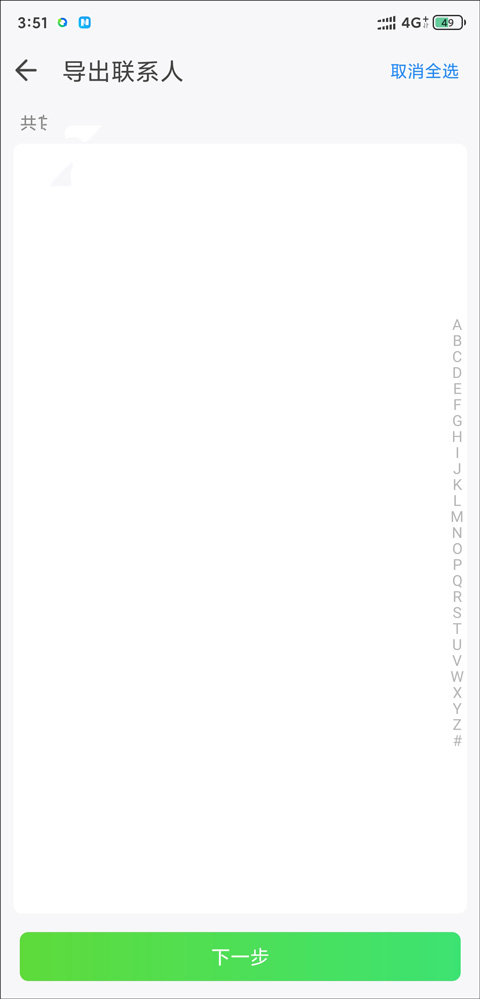 3、点击导出联系人,选择全选联系人,点击下走一步