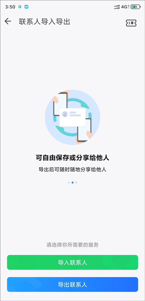 2、进入联系人导入导出界面,你可以选择导入导出服务