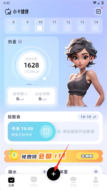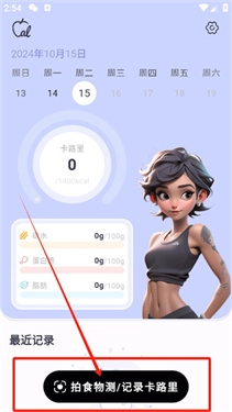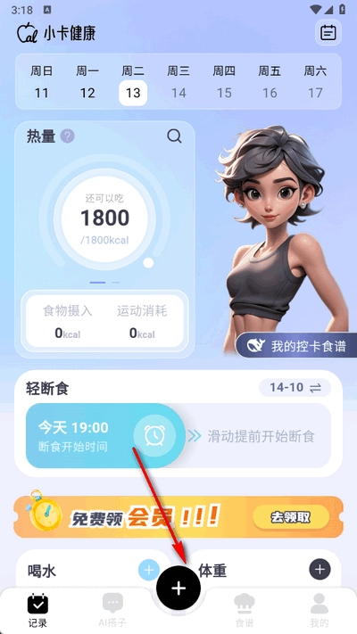 1、首先打开小卡健康App,点击主页的拍食物按钮。