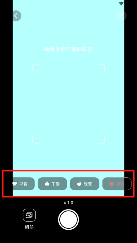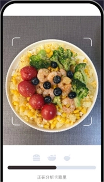 3、选择早餐晚餐等标签,拍照或者使用相册中图片,软件自动识别卡路里