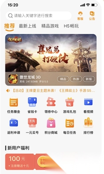 1. 在搜索框输入关键字可以快速寻找想要的游戏或福利活动,非常便捷。