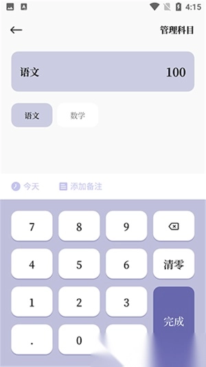 3.进入考分,可以设定考试分数目标、科目,备注完成奖励。