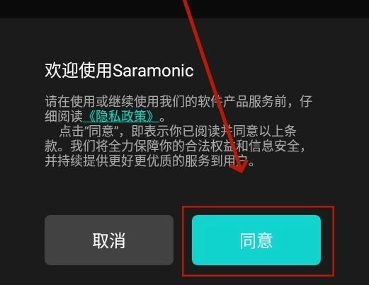 1.打开Saramonic,点击同意隐私政策