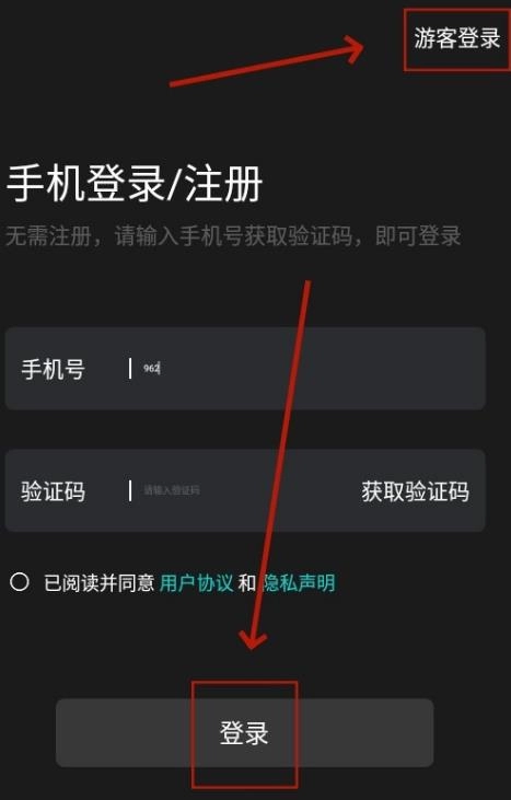 2.进入之后登录你的账号,不想登录的话就点击上方的游客登录