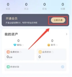 1、打开鲸云漫游,在【我的】页面,点击【立即开通】选项