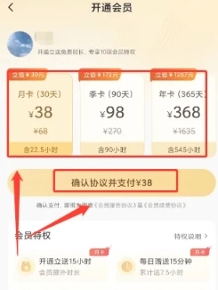 2、打开开通会员,选择会员套餐页面,点击【确认协议并支付】选项