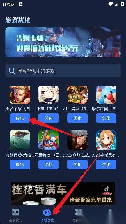 2. 支持一键优化游戏画面分辨率与帧率,智能化地识别每个游戏并对其进行专属优化。