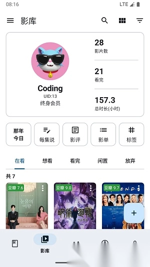 乐记为你打造一个功能完备的个人书影记录天地,无论是想看、正在看,还是已经看过的书籍、漫画、电影、电视剧、网文、小说、综艺等各类作品,都能在此记录,构建专属于你的小型管理库。这里拥有多个搜索源,为你提供便捷体验,支持一键导入图书与影片,还能进行分门别类、添加标签等操作。快来体验一下吧!