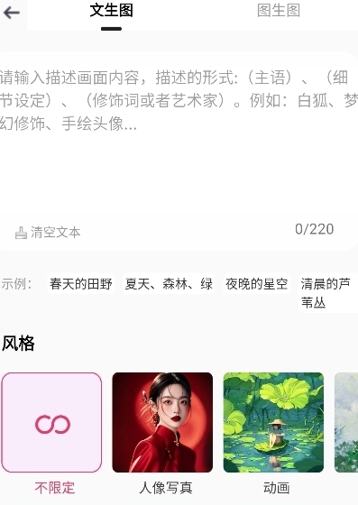 语绘大师AI免费版,这是一款手机端的智能绘图软件,凭借先进的图像生成技术,助力用户轻松达成图像创作的梦想。用户只需输入简短的描述,或者上传一张图片,系统就能自动解析相关信息,快速呈现与之契合的视觉佳作,帮助用户迅速生成自己心仪的图画!