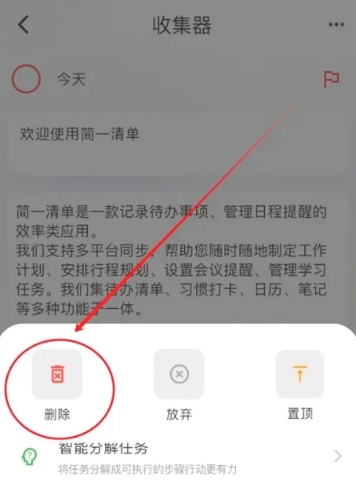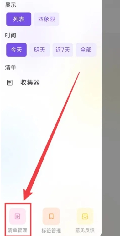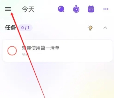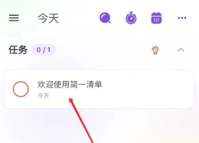 1、进入简一清单软件首页界面,点击进入箭头所指的方向