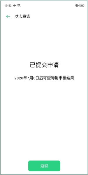 5、点击第4步“提交申请”后点击“返回”到申请界面,可在申请界面通过“查询审核状态”来查询是否通过审核