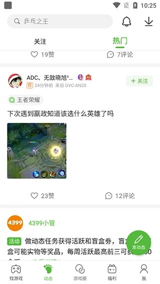 3、返回主界面,点击动态,在这里你可以看到更多大神的动态信息;