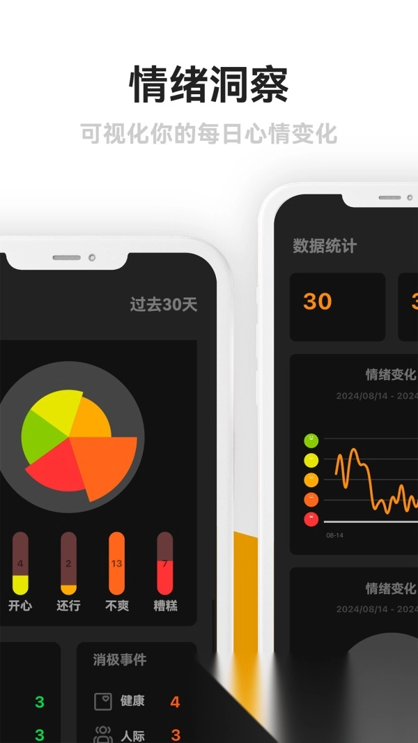 3.每一周还会自动生成您一周的心情变化,让心情变化可视化,让您更了解自己。
