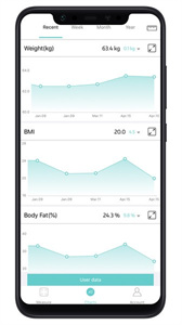 3. 每个人体重的数据变化,都会以智能图表的形式呈现,每日、每周、每月的变化情况清晰可见,用户对自身身体变化了如指掌,堪称身体管控者的福音。