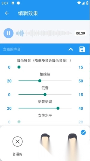 4. 根据个人喜好调整音效参数,设置完成后点击“保存”即可导出变声后的音频文件。