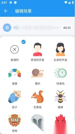 3. 选定音频后,进入语音变换界面,挑选你喜欢的变声效果包,如男声、女声或趣味动物音效等。