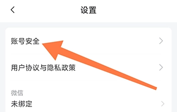 2、进入设置页面,点击账号安全