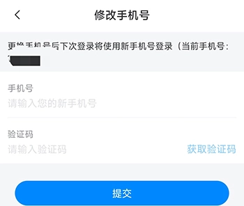 4、输入新的手机号并且验证,点击提交即可