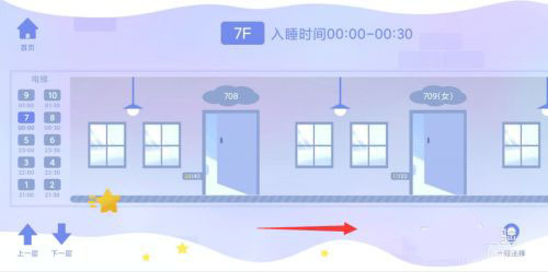3、点击不同楼层,能够选择不同的睡眠时间段,最早20:00即可入睡。通过向右滑动,可在该时间段内选择不同的寝室。
