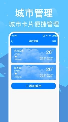 2、确保用户获得准确的天气信息。用户还可以添加多个城市,方便同时关注不同地区的天气情况。