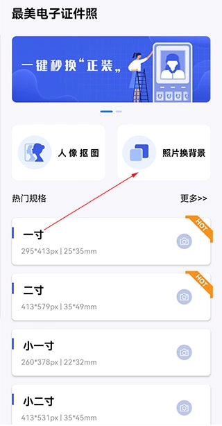2、可以帮助你快速更换背景,红、篮、白底都可以,拥有智能抠图换底技术。
