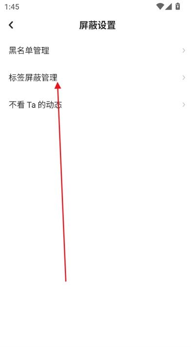 进入设置页面后,找到并点击“屏蔽设置”。