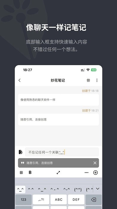 像聊天一样的输入框,长按调起更多操作,引用笔记进行关联