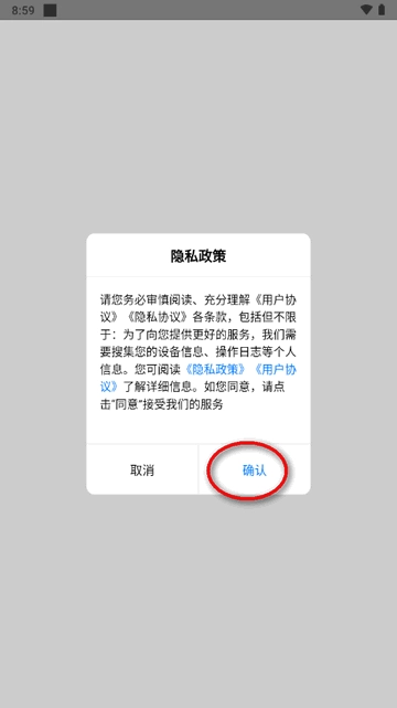 2、第一次进入是需要查看用户隐私政策,点确认进入。