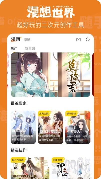 漫想世界最新版,专为二次元用户打造,是一款创作二次元人物的APP。这里面有海量小说和漫画可供畅览,每日都会及时更新。软件支持自定义二次元形象,还配备了零门槛的漫画编辑器,新手小白也能轻松上手。喜欢的朋友,快来体验吧!