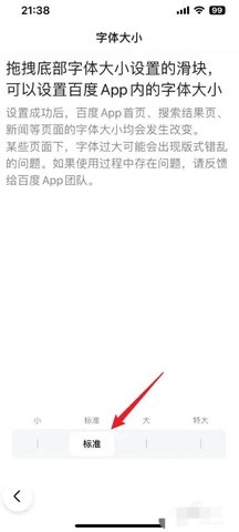 进入到字体大小页面,将滑块向右侧进行拖动,达到想要的大小。