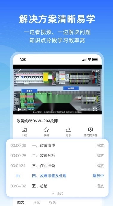 用户仅需输入故障关键词,即可一键获取精准解决方案,其中80%的解决方案以现场真实排故操作者第一视角呈现,实现全方位零盲区实景展示,确保用户不错过每一个操作细节。每个解决方案均提供故障原因深度分析,让用户加深记忆并触类旁通,同时手把手沉浸式标准操作动作,助力用户素质提升和习惯养成。视频方案均附图文同步对照详解,满足不同使用习惯,提升观感体验。