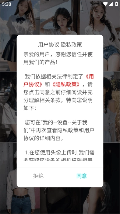 首次打开软件时,用户需要知晓并同意用户协议与隐私政策。