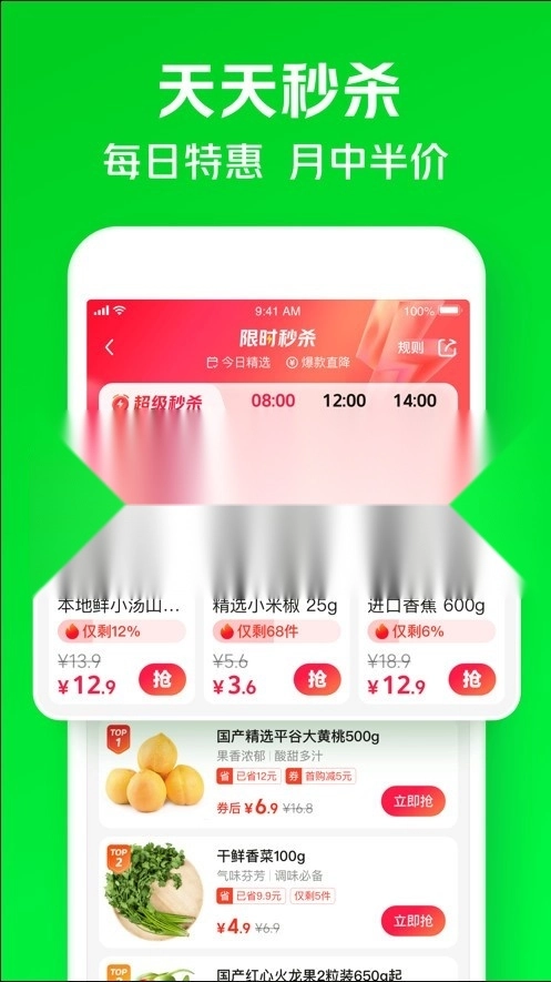 小象超市,作为美团旗下的自营生鲜百货平台,品类极为丰富,涵盖蔬菜水果、肉禽海鲜、酒水饮料以及烘焙糕点等诸多品类。在这里,你能享受到快捷便利的购物体验,商品最快30分钟就能送达。不仅品质有保障,价格也十分亲民。让你购物无需操心,省力又省时,一站式购齐所有所需商品。