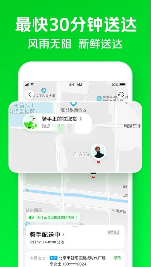 【极速送达】凭借遍布社区的众多服务站,覆盖周边3公里范围,自建配送体系,让您的订单最快30分钟到手。
