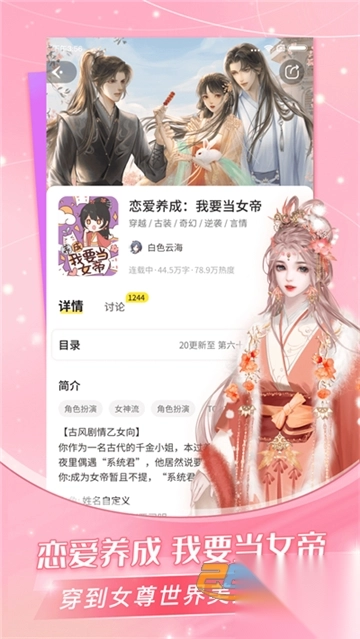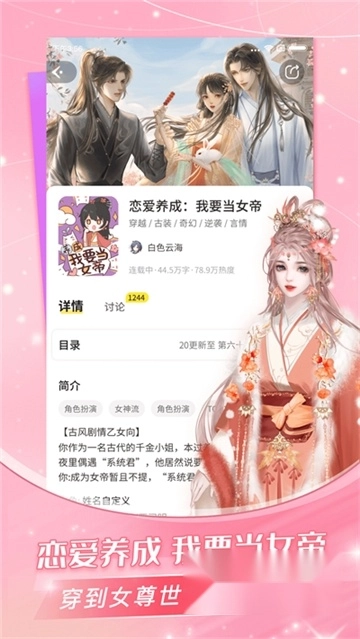 4.【品类齐全】古风、现代、架空、生存、二次元、穿越、冒险、校园、古代、明星、后宫,养成、品类繁多,等你宠幸