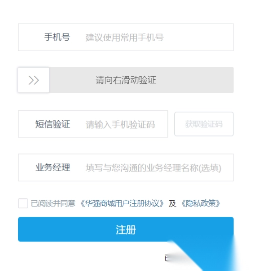 2.在注册页面输入常用手机号,验证后即可完成注册;