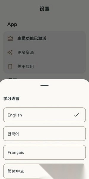 3. 从系统提供的语言列表中,点击任意一项作为新的学习语言
