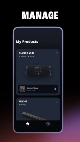 1、用于设置和控制新JBL Wi-Fi扬声器和条形扬声器的应用程序。