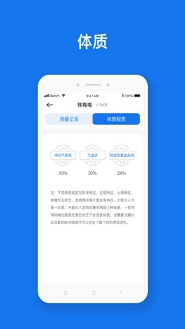 2、慧脉药系统会连续为常客进行统计分析,并根据持续测量结果提供体质报告。