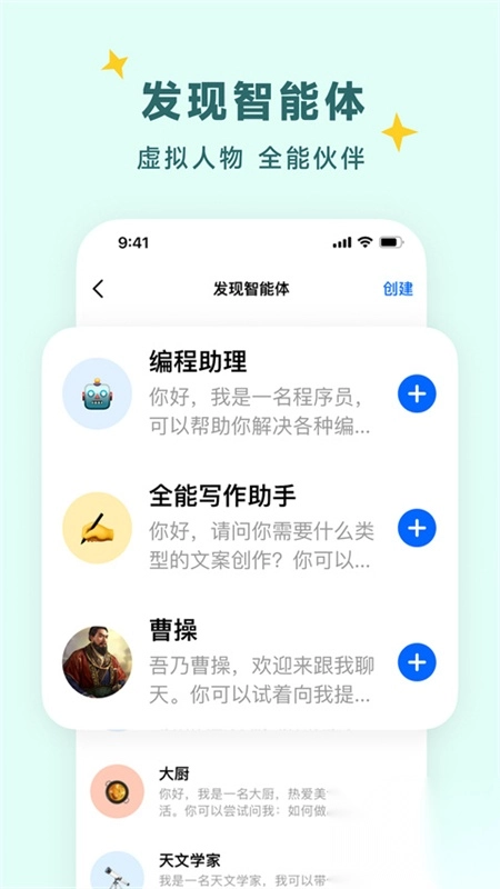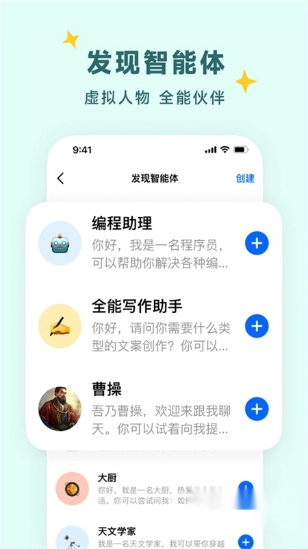 2、训练和定制属于自己的智能体,更加符合自己的聊天喜好,专属您的私人聊天助力,做你的智能助手。