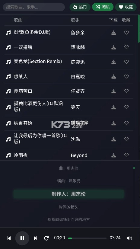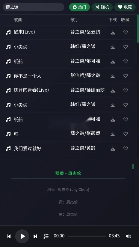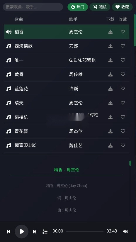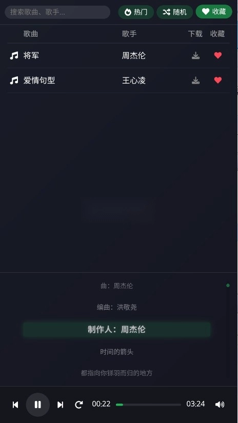 搜索功能:强大的搜索引擎,支持歌名、歌手、专辑、歌词等多种关键词搜索。