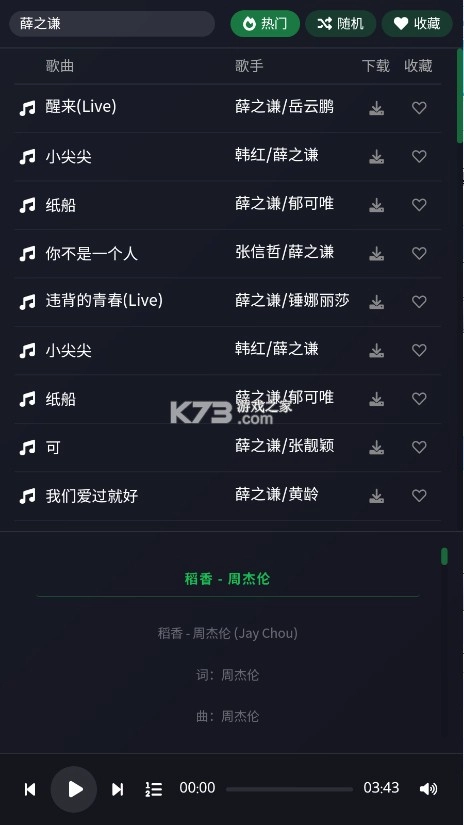 在线听歌:用户可以直接在线播放歌曲,并且可以查看歌词。