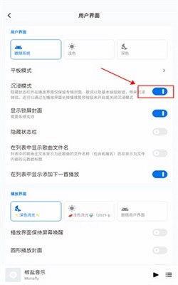4、在用户界面设置中,找到沉浸模式,点击后面的开关按钮