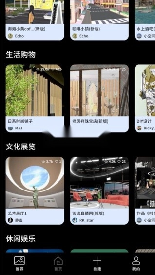 1、打开筑作App,可以看到页面有推荐、首页、自建、我的四个模块。