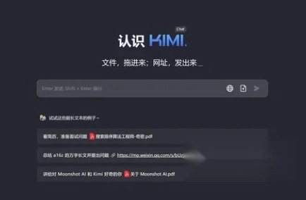 kimichat的口号是: 别焦虑,Kimi帮你整理资料,文件,拖进来;网址,发出来。