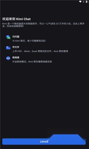 Kimi 擅长中英文对话,支持约 20 万汉字的上下文输入,可以帮助你解答问题、阅读文件、联网搜索并整合信息,提升工作效率。