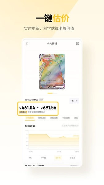【一键估价】借助历史数据与趋势分析,从多维度对卡片当下市场行情进行预测,助力您精准评估卡牌价值。