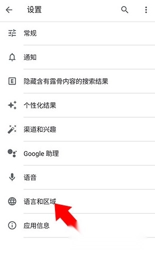3、进入设置界面后,点击下方的语言和区域选项