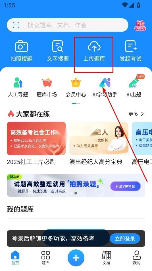 2.选择上传题库;