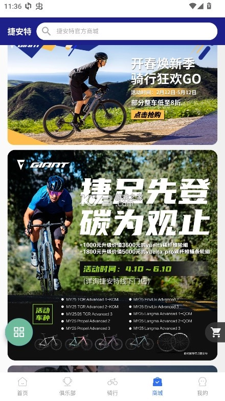 骑行软件,用户通过这款软件中轻松查看自己的骑行记录、次数、时间、里程、卡路里、平均时速、骑行路线等相关信息,还有着丰富的功能,包括商店、发现、俱乐部等功能,其中在商店内用户可以查看购买捷安旗下的自行车或者是其他自行车,在发现中,了强大的导航系统,通过添加目的地和出发点将显示你相关的路径,从中你可以选择最快的骑行路径,还有着活动抽奖、保险服务、门店查询、消息通知等功能。